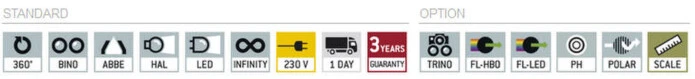 You can choose between mono bino or trinocular versions with dioptre compensation (only bino- and trinocular models)