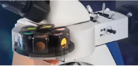 - Depending on the model, there are either blue/green or blue/green/UV/V fluorescence filters, as well as a centring lens for the fluorescent lightingincluded with delivery