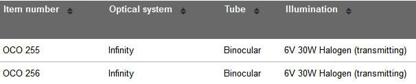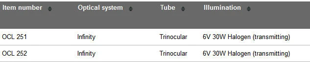 As standard, these binocular microscopes are fitted with with large visual field , dioptre compensation and infinitely corrected planachromatic lenses