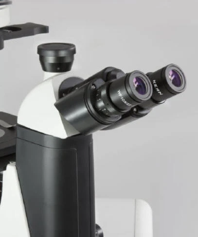 - As standard, these trinocular microscopes are fitted with wide-field eyepieces with large visual field , dioptre compensation on both sides and infinitely corrected planachromatic lenses