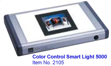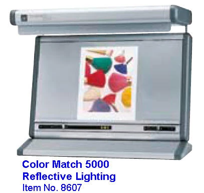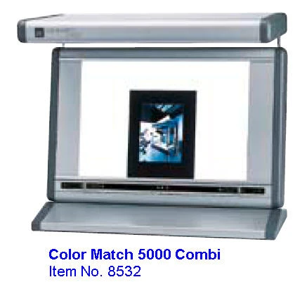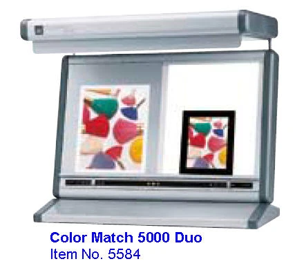 Sleek, portable color viewing system for using at DTP-workstations. The basic requirement for visual color judgement of inkjet-proofs with 5000 Kelvin. Unique folding design incorporates a carry handle.