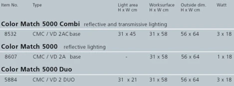 Compact and space-saving unit for exact color matching under standardized lighting conditions.