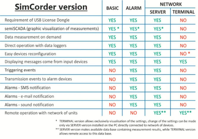 - ability to send email notifications and SMS in the Alarm or Network versions