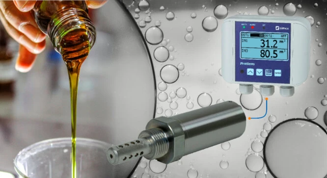 Using our transducer - the ProSens environmental parameters meter and a sensor measuring the presence / content of water in oil.