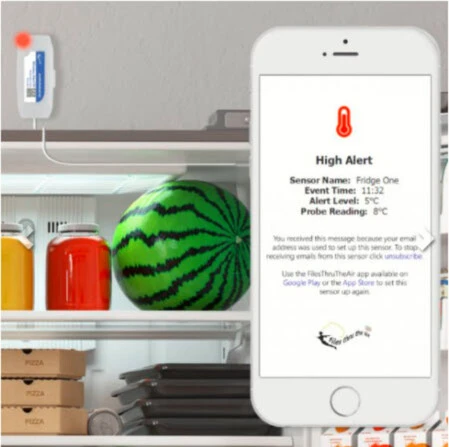 The device will trigger a notification email, sent to a user-selected address, if the temperature limits are breached and when the temperature returns to normal. I