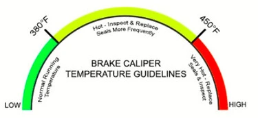 Another use is selecting brake fluid and pads. Temperatures that exceed the operating range of your brake fluid can cause fluid vaporization leading to fade or loss of brake pedal. Overheating can also cause premature failure of brake pads.
