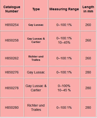 All alcoholometers class I to III are available government tested with verification certificate.