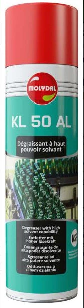 KL50 AL cleans and degreases all mechanical parts (chains, lines, bearings, pinions, filters, etc.) without leaving residue after evaporation. KL 50 AL is specially formulated for spray application, notably because of its low odour. Non-Food Compounds Program Listed K1 Registration: 142221.