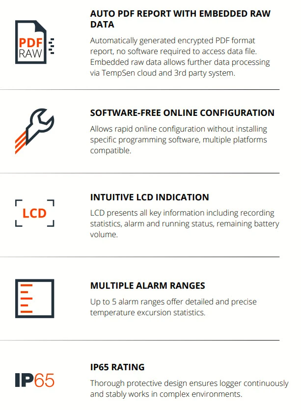 Up to 5 alarm ranges offer detailed and precise temperature excursion statistics