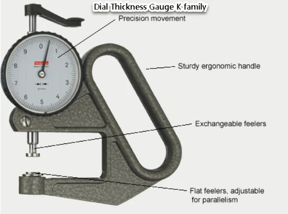 - Dial Thickness Gauge K 100 R reading 0.1 mm, range 10 mm depth of jaw 100 mm