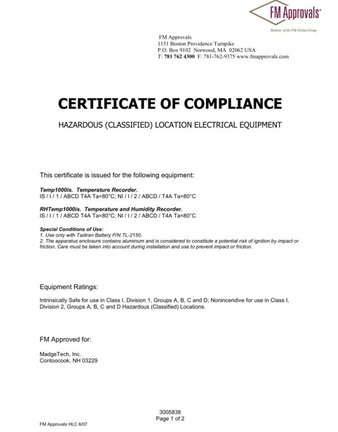 The RHTemp1000Ex humidity and temperature data logger carries hazardous location certification (ATEX, IECEx).