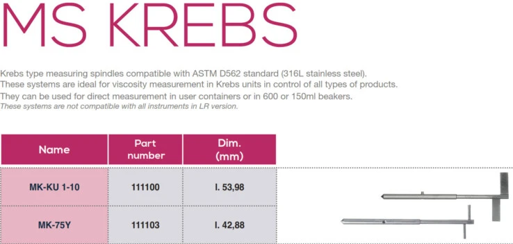 These measuring spindles are intended for measuring viscosity in a 600 mL beaker.