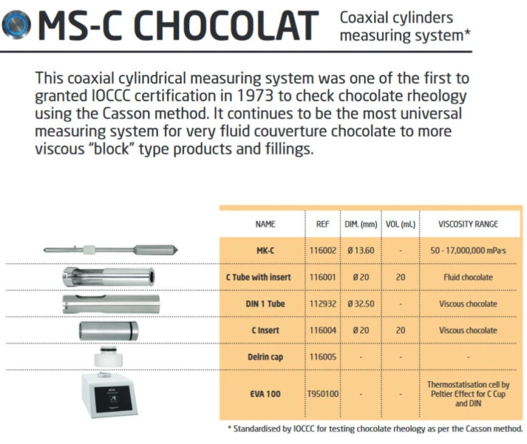 Standardised by IOCCC for testing chocolate rheology as per the Casson method
