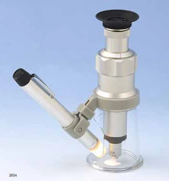 Lenses offering from 2x to 30x magnification are available for the standard microscope. The measurement scales associated with each magnification (lens) can be changed in the eyepiece. To ensure a rapid, dependable and clean use when frequently changing scales we recommend changing the entire eyepiece.