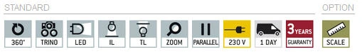 Due to its nature, column supports, as well as the integrated dimmable LED with reflected and transmitted light, these models are particularly flexible