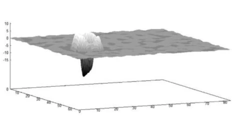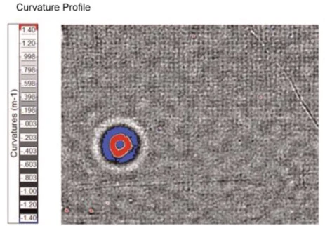 This curvature field has a high sensitivity to local altitude variations caused by defects.