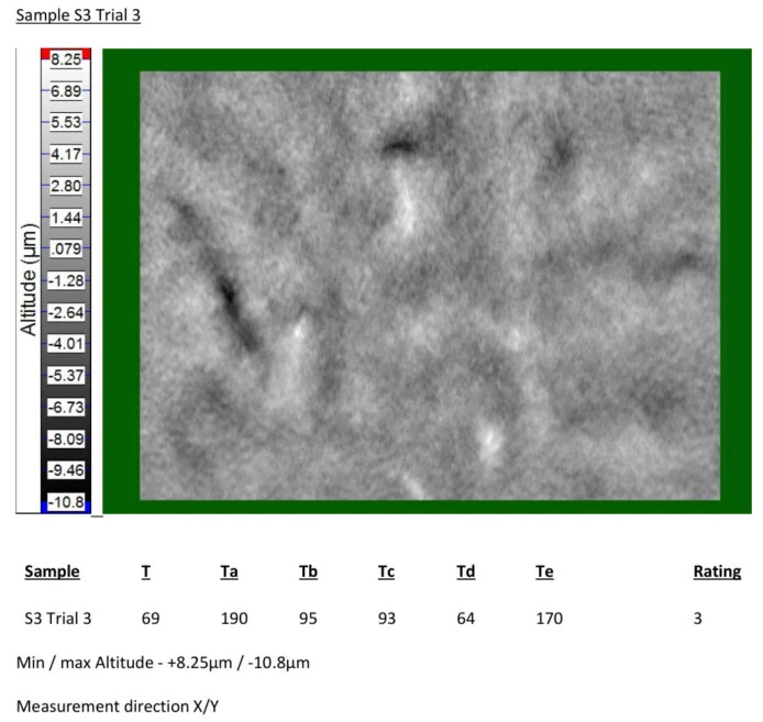 In a single fast operation the Optimap™ maps the topography of a test surface displaying faults and texture in incredible detail. Mapped information is processed into objective surface measurements that can be used to effectively control product quality. product can be compared to the Wavescan DOI.