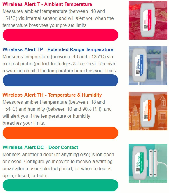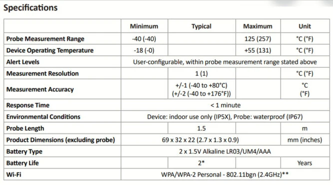 Wireless Alert TP measures temperature between -40°C (-40°F) and 125°C (257°F).