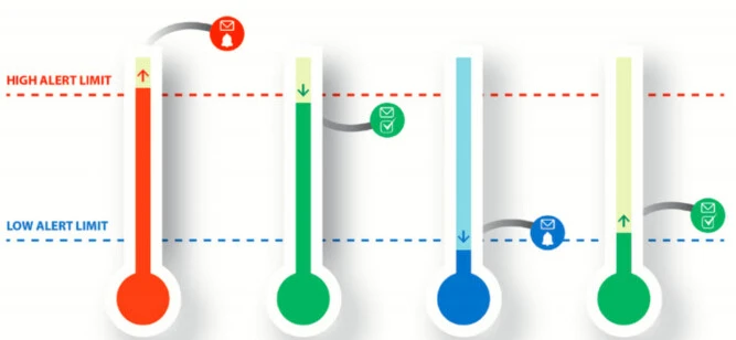 It will notify you via email whenever temperature breaches your pre-set limits, and when the temperature returns to within those limits.