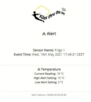 In addition to this, the device can send a scheduled summary email detailing minimum, maximum and average temperature, as well as battery level, number of alerts, and total time spent in alert.