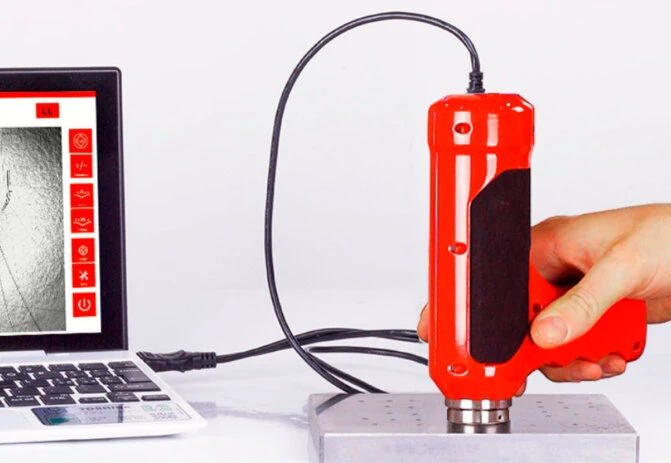 Portable digital microscope for automatic Brinell measurement indent reading conforms to ASTM E10/ISO 6506 international standards.