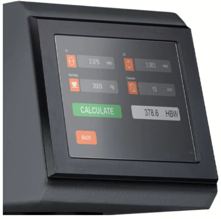 Once these parameters are set, the user clicks the ‘CALCULATE’ button, and the software automatically processes the data to provide the final hardness test result.