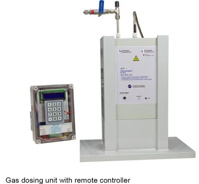 Electronic Gas Dosing Unit for sulphur dioxide for tests in SO2 containing atmospheres, in accordance with DIN EN ISO 6988, data storage via an included terminal program (USB port); calibrated dosing range 0.2 dm3 and 2.0 dm3 SO2 at 20 °C and 1013 hPa (accuracy: +/-3% max. relative error.)